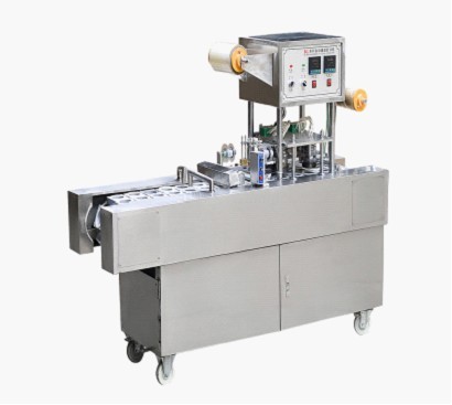 BG32系列小型全自動豆漿灌裝封口機用于100-500ml果奶,牛奶,果汁,豆漿等塑杯自動灌裝與封口,自動切膜省去人工,氣動切膜制蓋,卷廢邊完成自動化,符合食品衛生要求,整機設計精密,小杯口灌裝定位準確,兩次連續灌裝定量準確減少泡沫,兩次熱封裝置,封口嚴密,質量保證,是最實惠的小型自動切膜灌裝封口機。